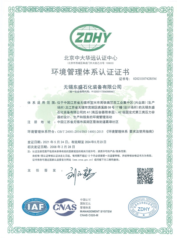 环境管理体系认证证书